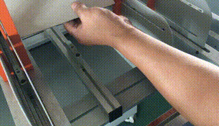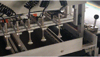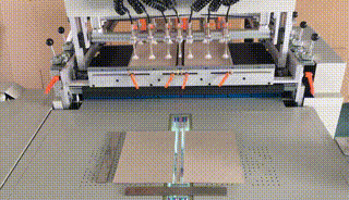 在更換不同厚度紙板或有需調節(jié)紙板時,按下按鈕后送紙板機構會吸起紙板運行前部位置停止,根據(jù)紙板規(guī)格厚度調節(jié)紙板推規(guī)至合適的位置,再次按下按鈕送紙板機構回到起始位置。 |